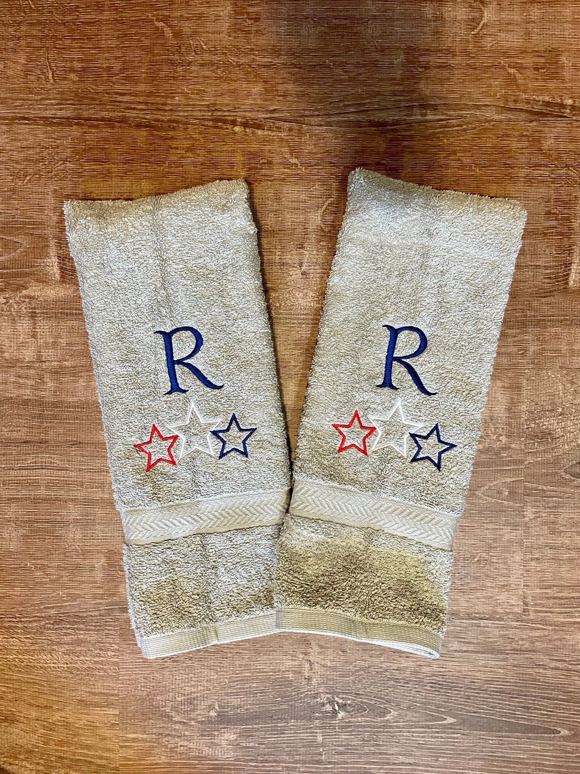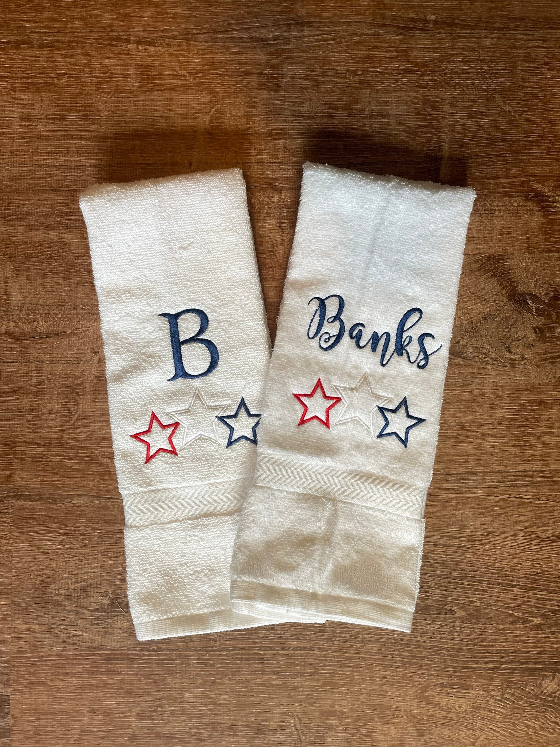 Patriotic Personalized Bathroom Hand Towels -Cotton- Embroidered-Great for boat